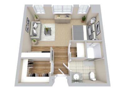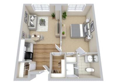 Whether you’re looking for a private studio or a companion suite, each Memory Care apartment is thoughtfully designed for convenience, safety and comfort. Along with expert care and support available 24/7, all residents enjoy their homelike apartments as well as a host of exciting community amenities! Browse our featured Memory Care floor plans below, and contact us when you’re ready to schedule a tour!